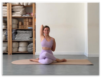 This seated spinal twist involves crossing one leg over the other and twisting toward the raised knee while using the opposite arm as leverage.