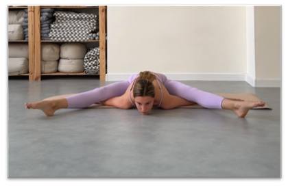 A calming, introspective pose where you stretch both legs forward and fold gently from the hips, reaching for your feet or toes.